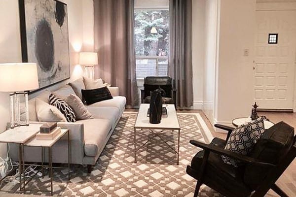 With three bedrooms and beautiful decor, we can now get a sneak peek inside her Canadian pad – and it’s safe to say that were a little obsessed. With dark wood paneling on the outside, this house merges perfectly into the tree-lined surroundings. We especially love the pop of green coming from the front door.