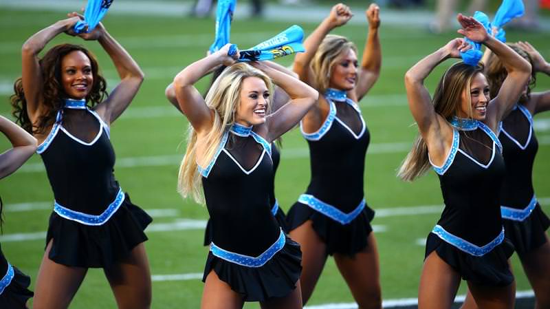 Unfortunately, the ladies of the NFL cheerleading squads don’t get this luxury. After arriving at 7:30 am to practice, the ladies stop at 9 am to get ready before making their way onto the streets to sell merchandise or their notorious calendars.